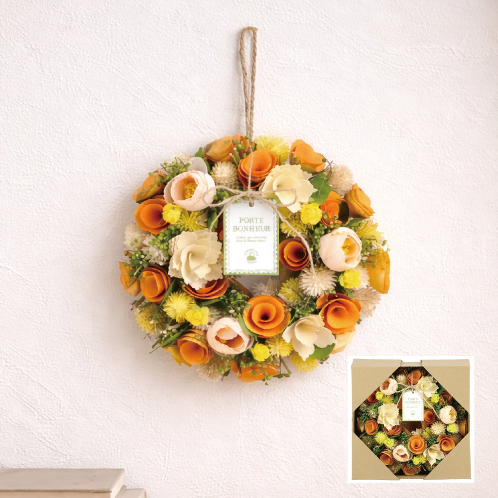 ビタミンカラーの華やかな配色のリースです。