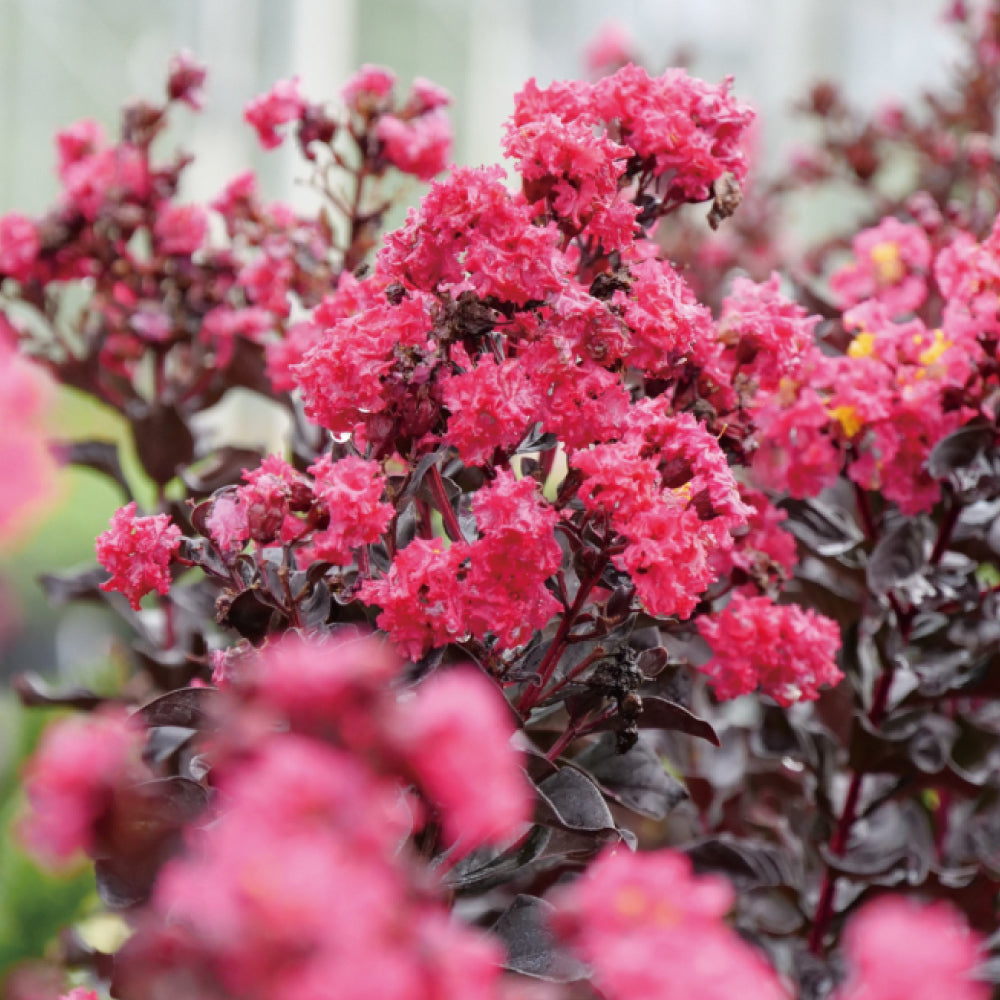 サルスベリ センターステージ ピンクはコーラルカラーがかわいらしくブラックリーフをさらに美しく引き立てるサルスベリです。