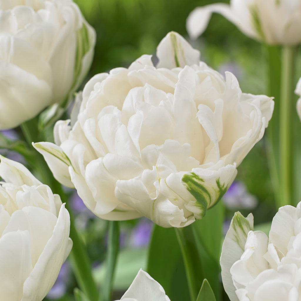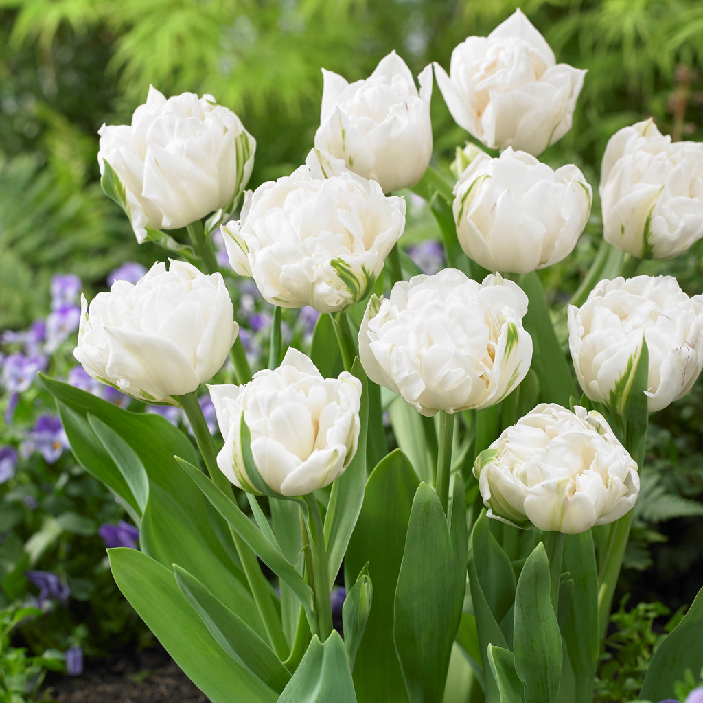 10月から11月に球根を植えつけます。庭植えの場合、球根の2個分の深さとし、間隔は大きな球根の場合は2個分をあけ、小さな球根の場合は1個分をあけて植えつけます。